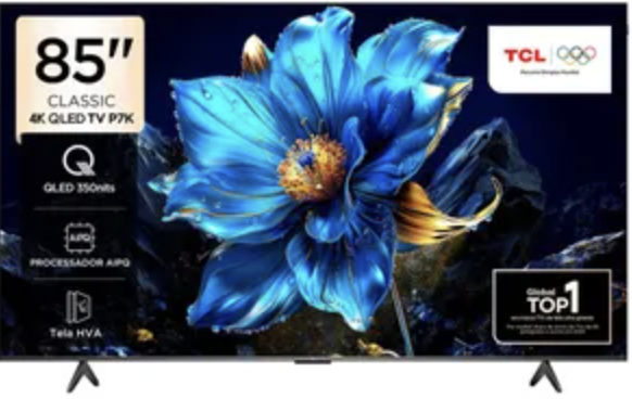 - Qualidade de Imagem: Tecnologia QLED que garante um bilhão de cores e suporte aos principais formatos de HDR, incluindo Dolby Vision.